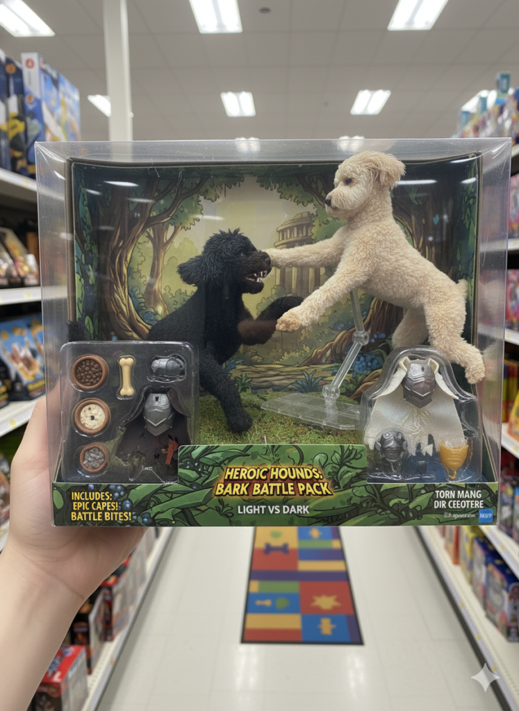 This was the result, a hyperrealistic picture showing someone holding up a “Heroic Hounds” action figure set, in what looks to be a Walmart or grocery store. The possibilities with this kind of technology are endless, especially in the classroom, as teachers can create visual aids painlessly, prompts for creative writing, or custom posters specific to their unit.